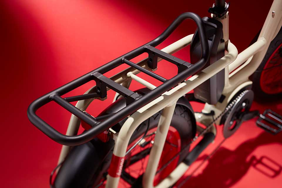 The RemiDemi® breaks all the rules of how a bike is supposed to look and ride. We gave it small wheels and fat, grippy tires for major maneuverability. A thick, sturdy frame with a convenient low step through. And an upright seating position atop a wide saddle that puts you in total control. The RemiDemi loves to play, but it can also put in heavy work with a powerful Bosch mid-drive electric motor, Shimano Sora 9-speed and hydraulic disc brakes, and available accessories that give you countless clever ways to carry a child or loads of cargo.