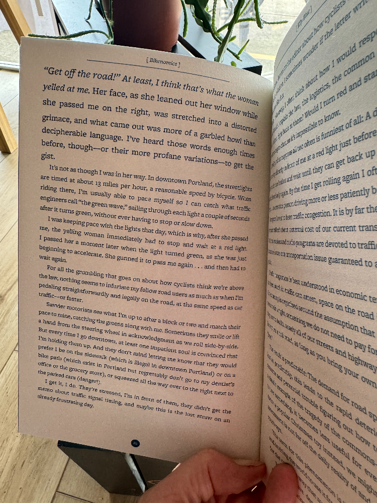 Elly Blue's Bikenomics provides a surprising and compelling new perspective on the way we get around and on how we spend our money, as families and as a society. The book starts with a look at Americans' real transportation costs, and moves on to examine the current civic costs of our transportation system. Blue tells the stories of people, businesses, organizations, and cities who are investing in two-wheeled transportation. The multifaceted North American bicycle movement is revealed, with its contradictions, challenges, successes, and visions.