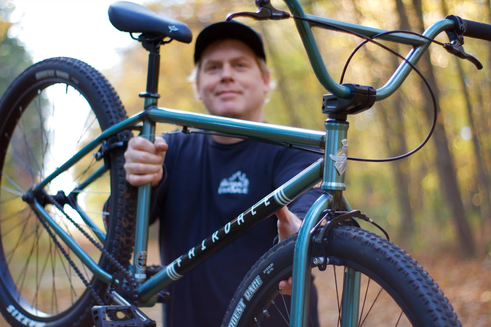 “I’m excited to introduce you to my signature bike. The Taj bike has always been about blending the tough and simple sensibilities of a BMX bike with a frame size that you can also comfortably sit down and pedal. This year’s model makes the jump to 27.5” wheels which are still agile enough for playing around, and even better for cruisin’. The frame, fork, handlebars, and cranks are all reliable chromoly. The single-speed drivetrain and Odyssey brakes are as dependable and straightforward as they can possibly be. The Taj is a bike that is fun to ride, made to last and a breeze to keep rolling. I hope you’ll give it a try.”