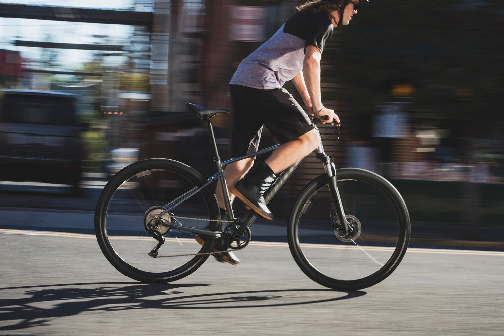 Updated flat-bar frame geometry puts the rider in a position that balances efficiency with stability, and disc brakes give you added control on rugged roads or dirt.