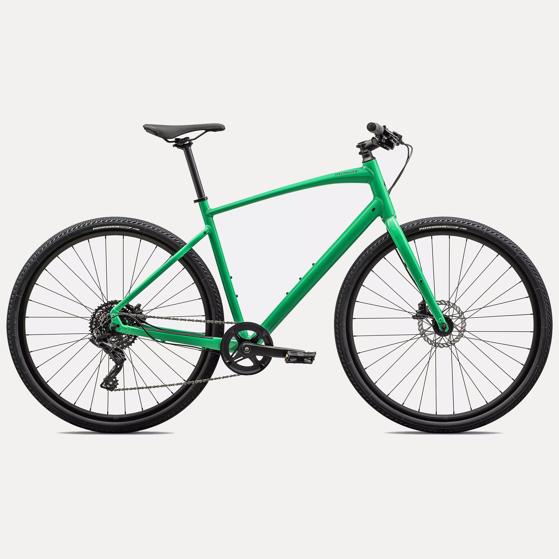 Float over rough terrain with fast rolling Specialized Pathfinder 42c tires featuring proprietary Gripton rubber compound.