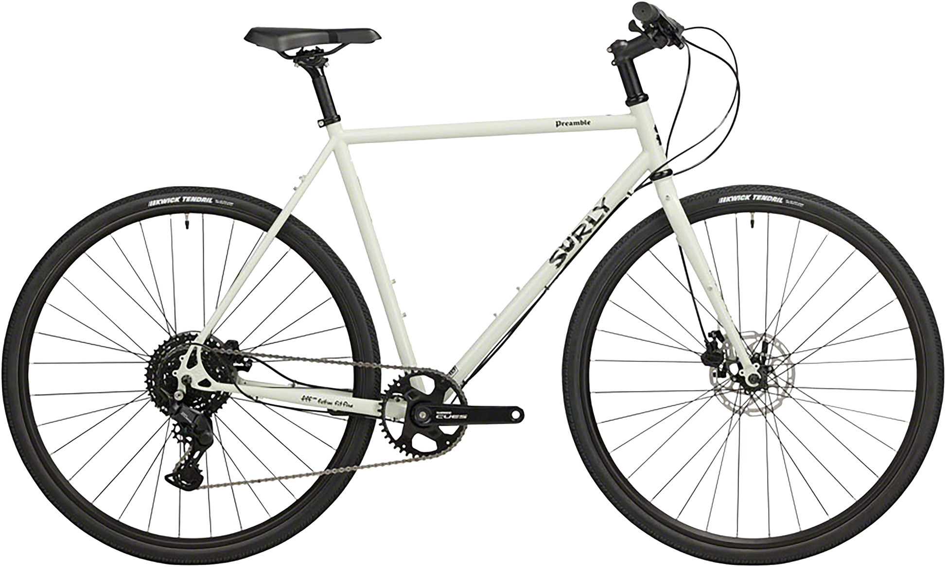 Preamble can run racks and fenders and carry a couple water bottles. Surly was raised on stealing basic cable, after all. Smooth and efficient on asphalt, Preamble’s double-butted main triangle provides a resplendent ride feel and withstands abuse from life’s inevitable potholes. Make it your own with flat bars, drop bars, a basket, or bags. On the road to steel euphoria, Preamble is the gateway drug.