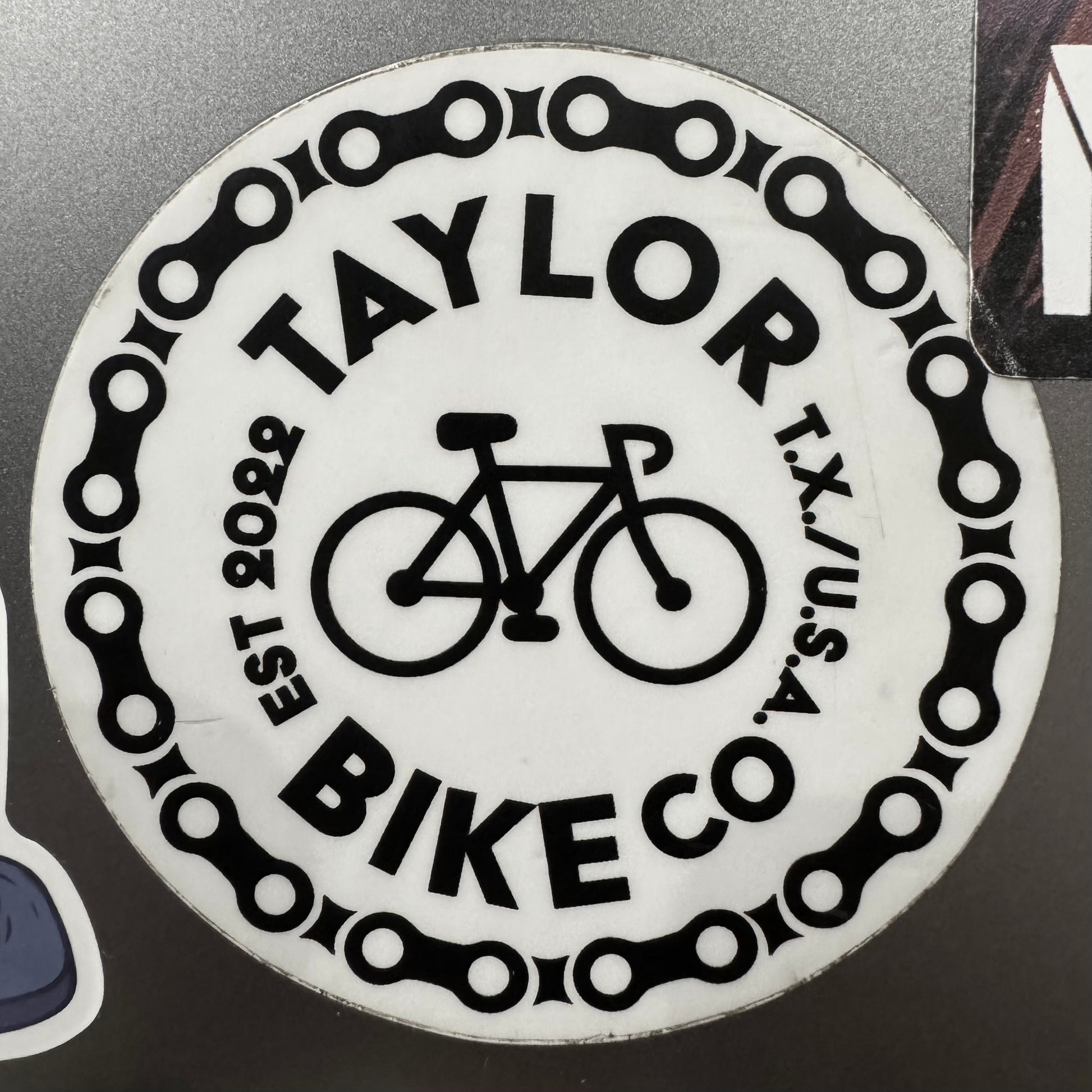 The Taylor Bike Company logo is printed on a durable vinyl sticker.